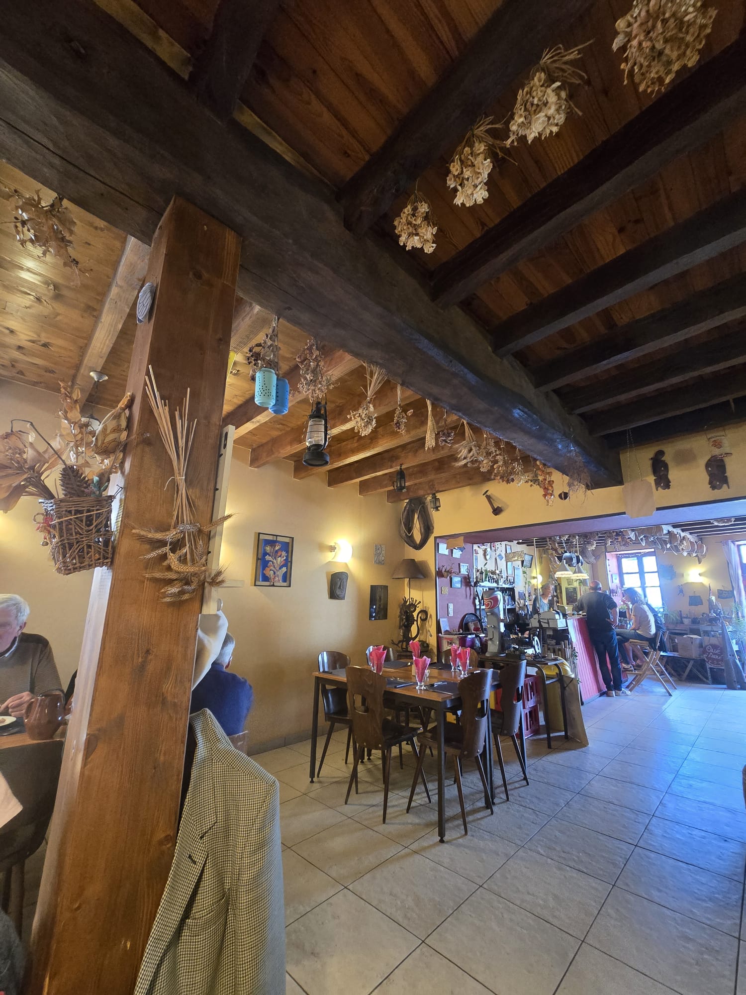 Une journée de quelque 200 km où la diversité des paysages nous laisse sans voix. La météo est estivale, on s’en met plein la vue, et c’est chez « La Louise » à Saint-Clément dans l’Allier que nous découvrons une cuisine traditionnelle et familiale dans un cadre insolite, façon brocante. Le lieu est exceptionnel, complètement décalé, et les mets typiques ravissent tout le monde.