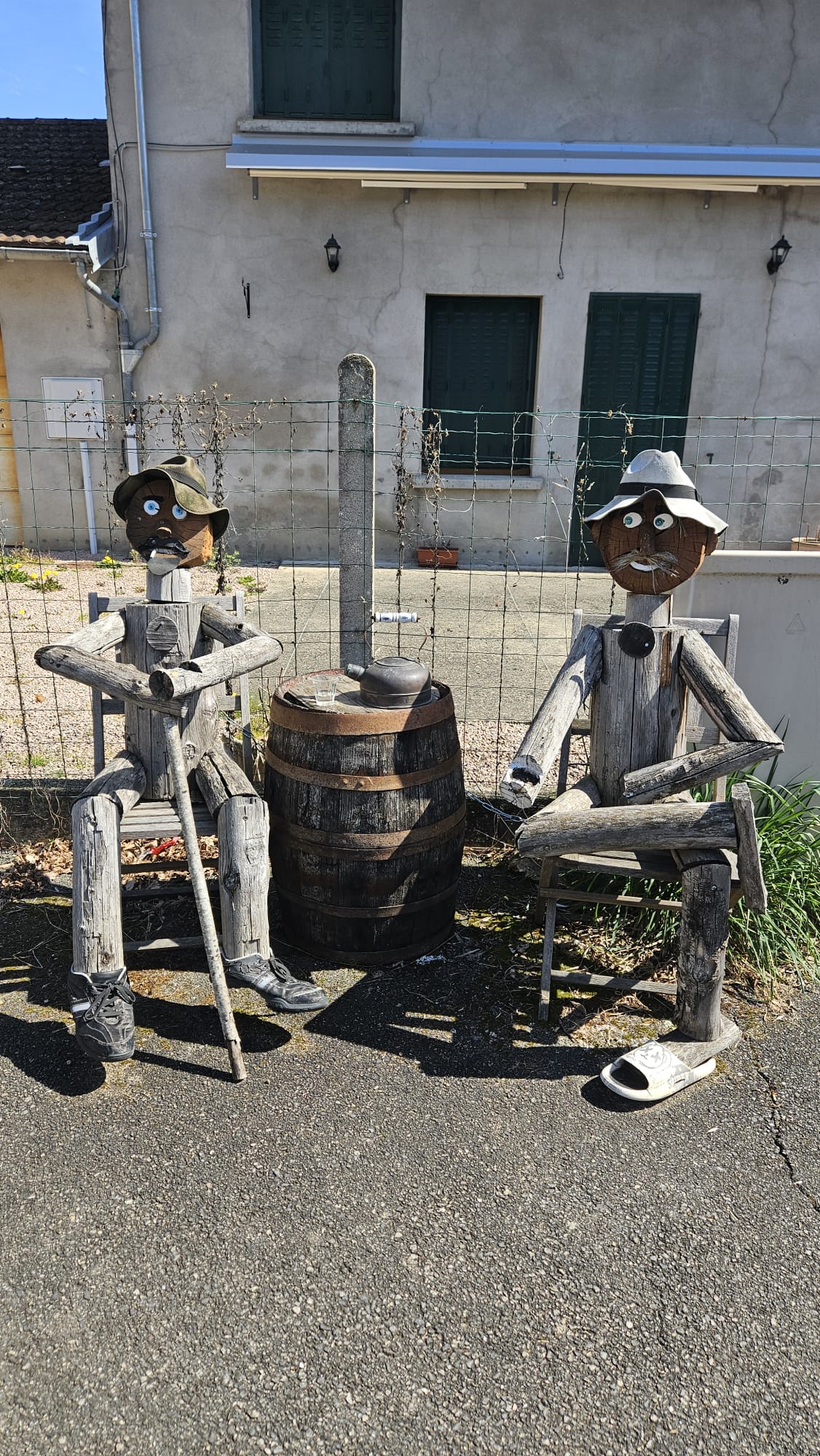 En cette fin de journée, on se retrouve à l’Auberge pour l’apéro avant de passer à table. Les Myrtillons sont en forme et, après deux-trois verres, les langues se délient. On découvre ainsi les manies (ou tocs) de chacun, en commençant par Hervé, qui s’est concentré sur le nombre de cimetières croisés sur la route… (sans commentaire… pourtant les paysages retenaient toute notre attention). Puis vient la nuisette jaune canari destinée à Pascal par son épouse Karine (on en déduit que c’est un fantasme… chacun son truc !). On attend la photo comme preuve à l’appui…